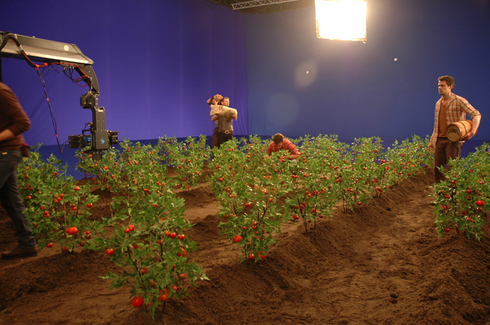 I made 80 tomato plants and planted them in a 8m x 10m ´field` in the blue screen studio