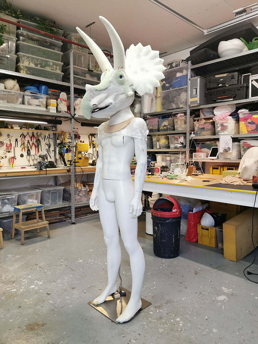 the Triceratops head had to be humanized in shape and proportions…