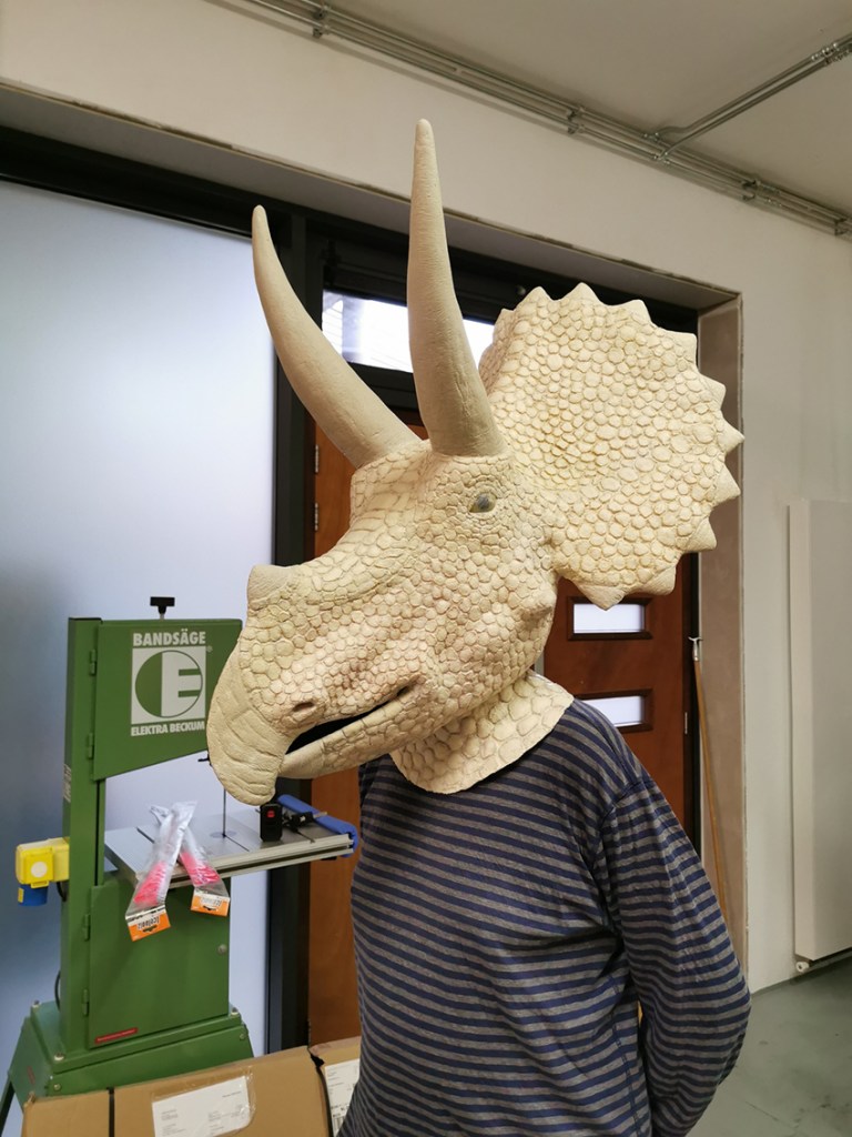 with a helmet inside to wear comfortably. The opening of the mouth is for seeing and breathing…