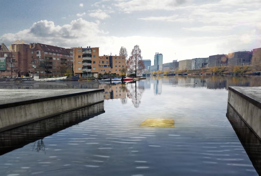 The golden m2 of Amsterdam, commissioned by artist duo ‘Raaaf’…